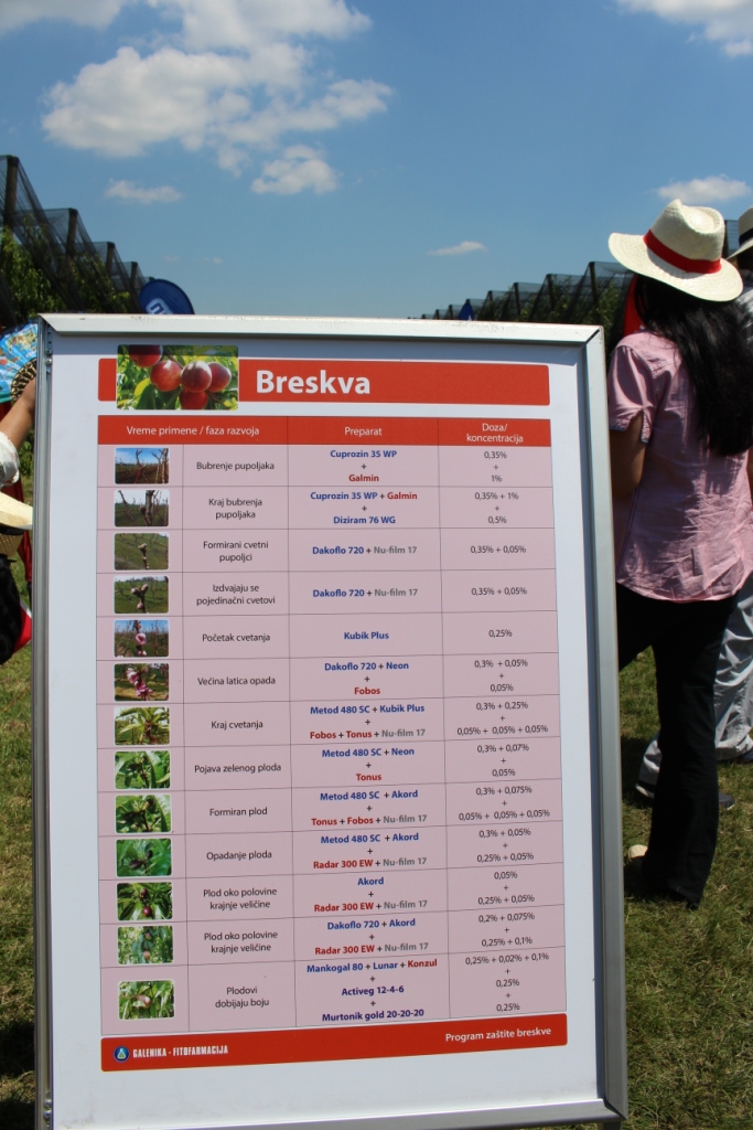 Održan je "Dan polja jabuke i breskve" u Kačarevu u saradnji sa poljoprivrednom stručnom službom Institut Tamiš iz Pančeva u ciljem promovisanja tehnologije zaštite jabuke i breskve i nektarine. Površina voćnjaka je ukupno 2 ha, po jedan ha za jabuku i jedan za breskvu i nektarinu. Prisutni su se mogli uveriti, kako u efikasnost delovanja, tako i ekonomičnost primene preparata GALENIKA-FITOFARMACIJE.